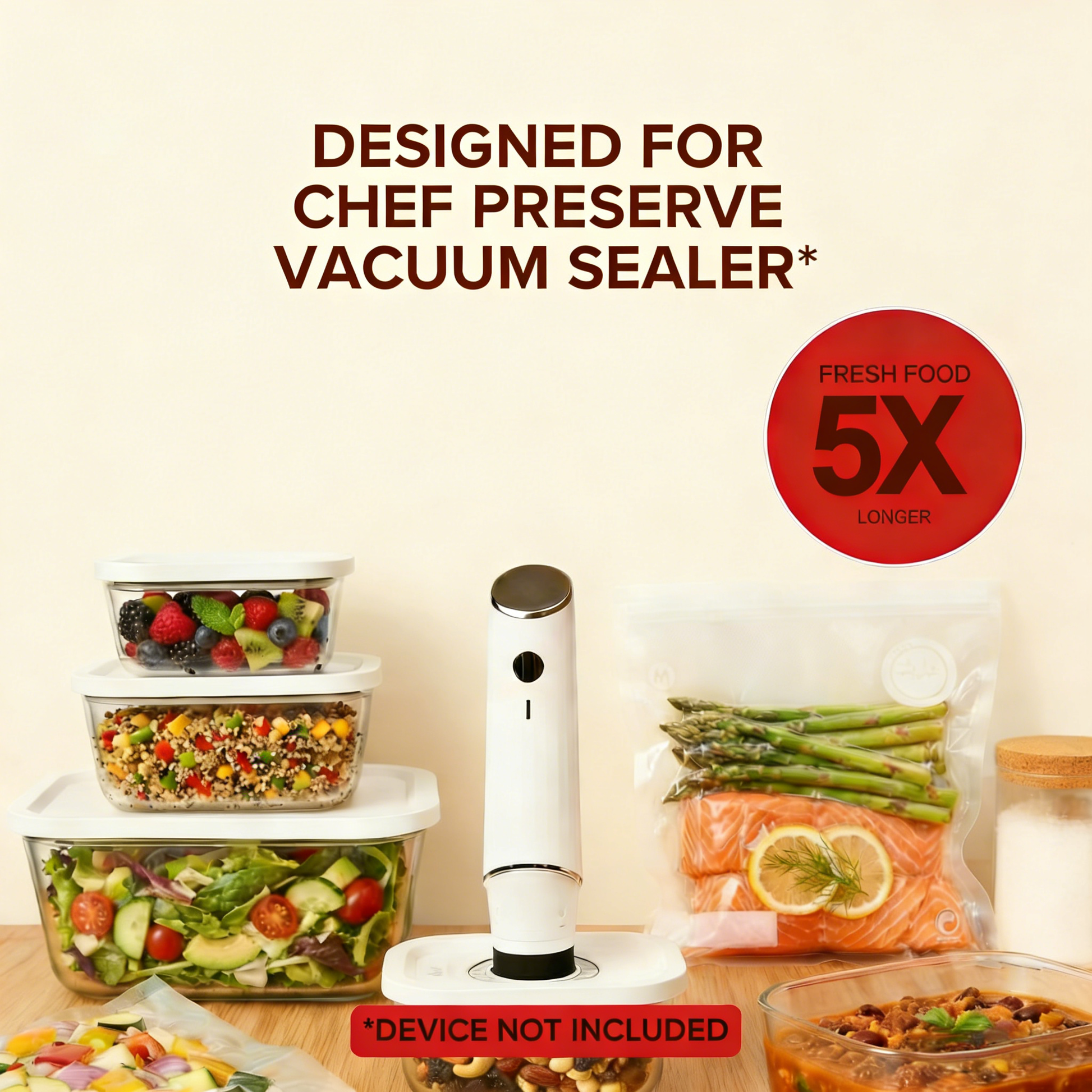 - Vacuum Seal Design: Creates airtight seal to keep food fresh 5x longer
