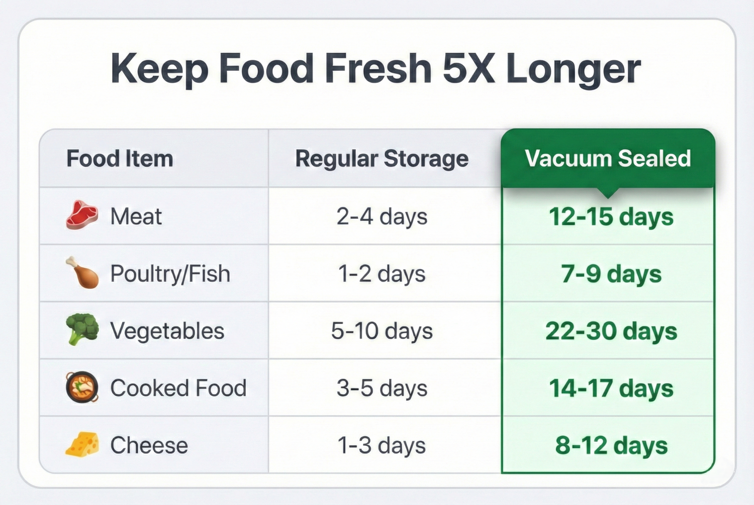 Engineered with industrial-grade technology, this sealer delivers professional-grade vacuum sealing results right at home. Boast 60kPa Vortex Suction that removes 99.9% of air in just 8 seconds for airtight preservation. Its GS Smart Pressure Sensor prevents delicate foods like chips and berries from being crushed, while the high-density battery powers up to 1,000 seals on a single full charge.